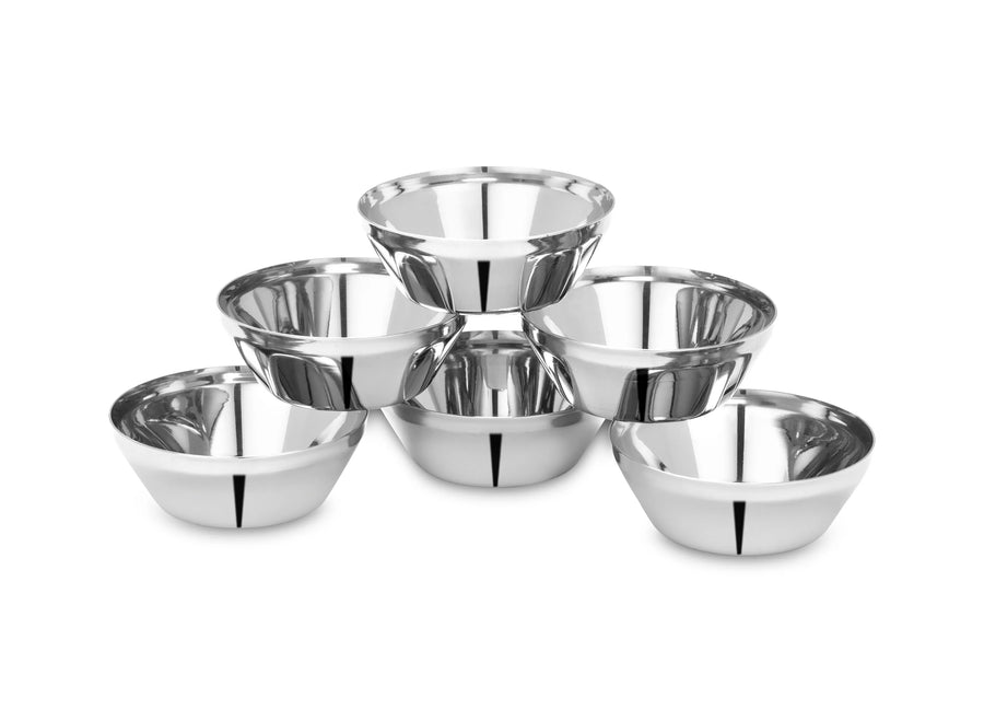 SS Bowls for Multi Purposes. The shape and design crafted for additing extra aamras, curd to your dinner plates.